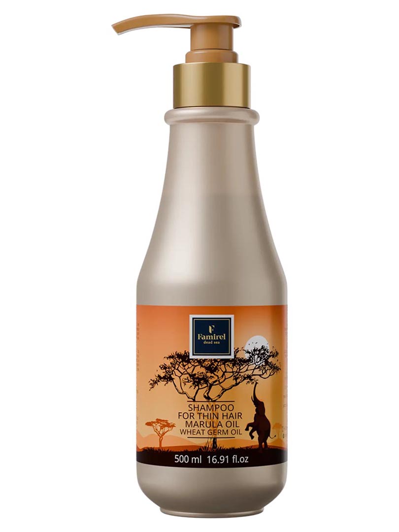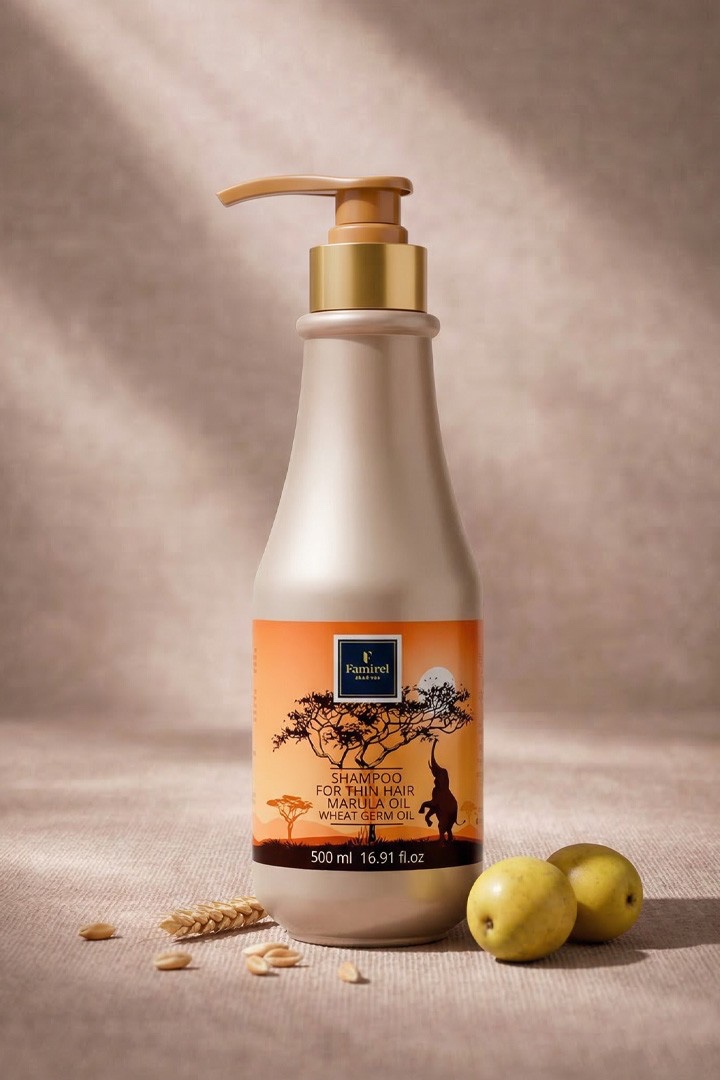 Le shampooing à l'huile de marula pour cheveux fins nettoie en douceur les cheveux, leur donnant force, volume et élasticité. L'huile de lin, le germe de blé, les extraits de pitaya et d'aloe, ainsi que la kératine hydrolysée, la biotine, la diméthicone, la vitamine E et le D-panthénol (provitamine B5) hydratent et nourrissent le cuir chevelu, préservant la brillance naturelle des cheveux.