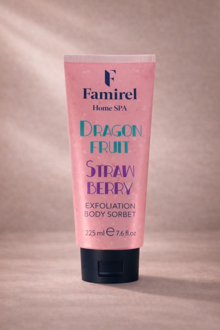 The refreshing body sorbet cleanses the skin and exfoliates dead skin cells, eliminating impurities. The formula with special castor oil granules instantly refreshes and softens the skin, while plant extracts nourish and moisturize it. It ensures velvety softness and smoothness of the skin.