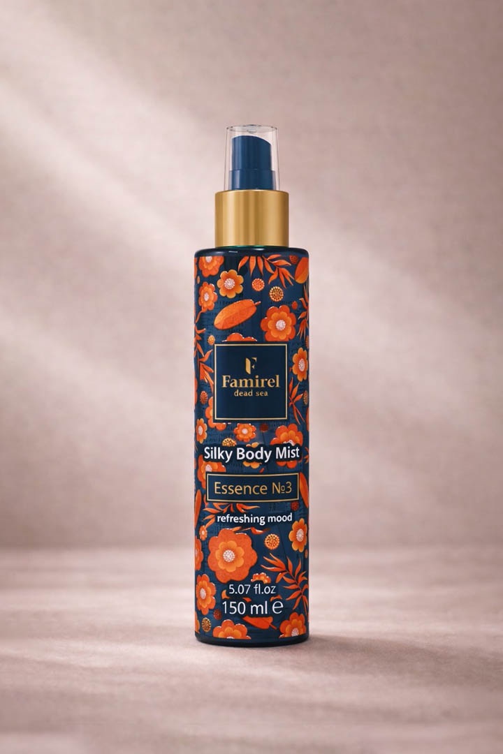 An exquisite floral powdery fragrance that is perfect for women. The composition begins with delicate and elegant notes of orchid, smoothly fading into warm, seductive accents of vanilla. The unique composition moisturizes the skin, leaving it soft, velvety and delicately perfumed throughout the day. It is perfect for those who appreciate sophistication and femininity in every detail. A refreshing body spray enriched with nourishing extracts of chamomile and green tea, as well as vitamins B5, kiwi and seaweed extracts, helps maintain the skin's natural moisture levels, leaving it fresh and well-groomed. Aloe extract, hyaluronic acid, and glycerin make the skin supple and elastic, while Dead Sea salt saturates it with trace elements and minerals.