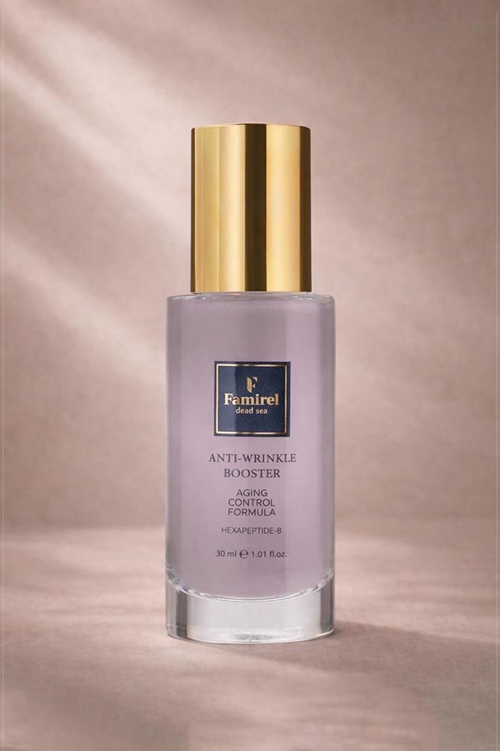 Discover the secret of smooth and youthful skin with our innovative anti-wrinkle booster. The effective formula is enriched with panthenol, which deeply moisturizes and softens the skin, while hyaluronic acid helps retain moisture, giving the skin elasticity. Acetyl hexapeptide-8 reduces the severity of facial wrinkles, making the skin smoother. Grape seed oil, rich in antioxidants, protects the skin against the negative effects of the environment and nourishes the skin. Include an anti-wrinkle booster in your daily skincare routine to strengthen, moisturize, and rejuvenate your skin.