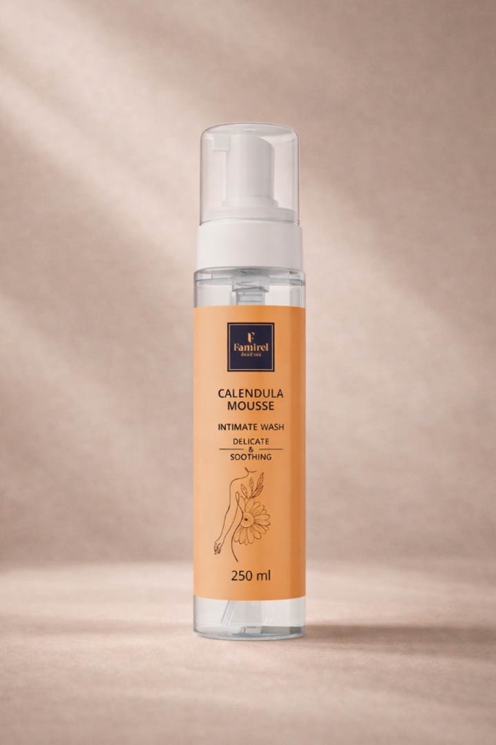 which the product carefully cares for delicate areas, maintaining their health and comfort at the highest level. The foaming dispenser provides a thick mousse, so that less product is used to achieve the same cleansing effect as the gel wash. This allows 250 ml of mousse to replace up to 600 ml of gel wash, ensuring long-term use and cost savings. By choosing the mousse, you get maximum efficiency with minimal cost! The natural microflora of a woman's body needs special care and protection. The active herbal components in the mousse normalize the microflora of sensitive intimate areas, restore the protective properties of the mucous membrane, giving freshness and purity for a long time. One of the main active ingredients is Calendula Extract, thanks to which mousse provides gentle care and protection. Calendula has antiseptic and anti-inflammatory properties, which help prevent irritation and maintain a healthy microbiome. It also soothes sensitive skin, promotes its rapid recovery and healing of minor injuries, providing comfort and freshness throughout the day. Cucumber Extract maintains an optimal moisture balance, tones, deodorizes the skin, and Pomegranate Extract intensively nourishes, supporting the natural protective function of the skin.