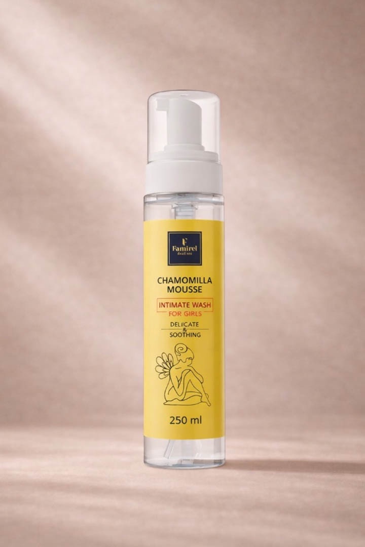 which the product carefully cares for delicate areas, maintaining their health and comfort at the highest level. The foaming dispenser provides a thick mousse, so that less product is used to achieve the same cleansing effect as the gel wash. This allows 250 ml of mousse to replace up to 600 ml of gel wash, ensuring long-term use and cost savings. By choosing the mousse, you get maximum efficiency with minimal cost! The natural microflora of a woman's body needs special care and protection. The active herbal components in the mousse normalize the microflora of sensitive intimate areas, restore the protective properties of the mucous membrane, giving freshness and purity for a long time. One of the main active ingredients is Chamomile Extract, thanks to which the mousse has antiseptic, anti inflammatory and soothing properties. Cucumber Extract regulates the moisture balance, tones and deodorizes, while Pomegranate Extract intensively nourishes the skin.