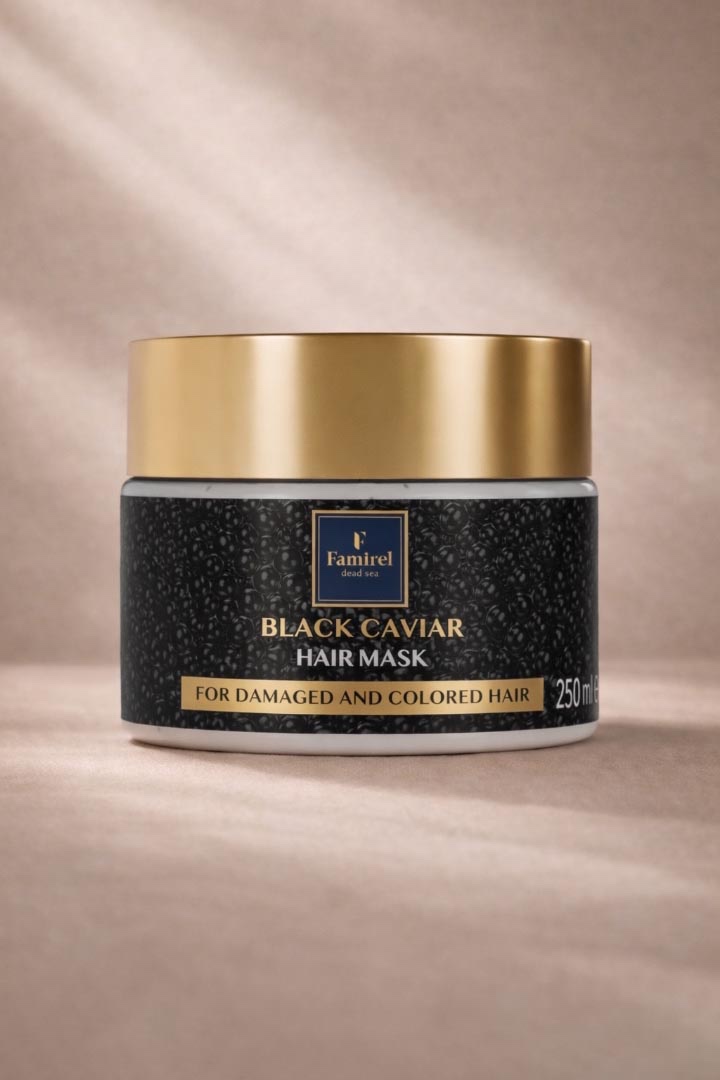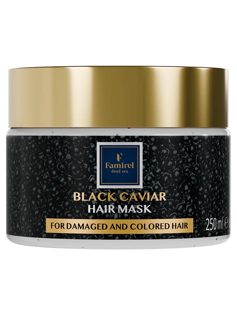 • Black caviar extract restores and strengthens hair structure, smooths it, enhances shine, and protects against UV radiation.