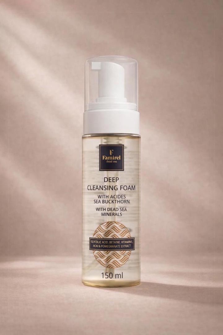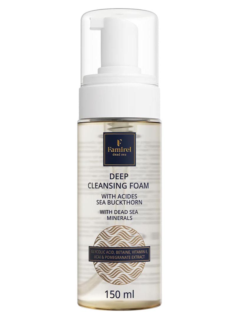 The main function of the foam is deep cleansing of the skin and removing dirt and blackheads due to glycolic acid and betaine in the composition, which help to clean pores and at the same time do not leave a feeling of dryness or tightness. The foam is suitable for various skin types, including pigmented, dull, problematic, oily and mature skin. Glycerin, Betaine, Aloe Extract and Lactic Acid provide gentle cleansing of the skin, making it soft and hydrated after washing. D-panthenol, Vitamin E, Pomegranate and Acai Extracts provide antioxidant protection, helping to repair and soothe the skin, protecting it against harmful environmental factors. Sea Buckthorn Extract moisturizes and nourishes the skin, promoting its recovery. Extracts of Calendula, Pomegranate and Aloe Vera additionally moisturize and nourish the skin. Dead Sea Minerals help rejuvenate the skin and maintain its natural hydro-lipid balance.