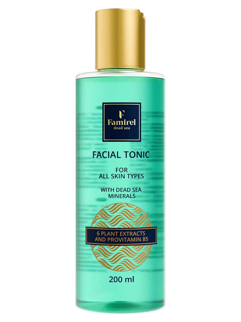 The tonic for all skin types contains Super food ingredients that moisturize, tone, rejuvenate, nourish the skin, restore the pH levels after cleansing, soothe and have a protective antioxidant effect on the skin, while Dead Sea minerals nourish it with trace elements and take care of your skin. Extracts of aloe and cucumber provide intense hydration to the skin, making it soft and smooth. D-panthenol and vitamin E soothe the skin and have a protective antioxidant effect. These ingredients help reduce skin inflammation and irritation. Extracts of flax seeds, chamomile and witch hazel help soothe and repair the skin. Dead Sea minerals promote skin rejuvenation and maintain its natural hydro-lipid balance.