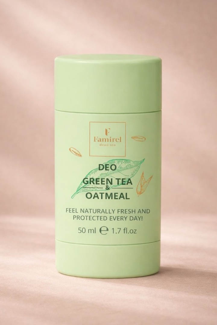 Active ingredients: green tea extract — a powerful antioxidant that protects the skin and gives a feeling of freshness. Oat extract soothes, softens, and prevents irritation. Panthenol (provitamin B5) deeply moisturizes and promotes skin regeneration. Vitamin E nourishes and smoothes the skin.