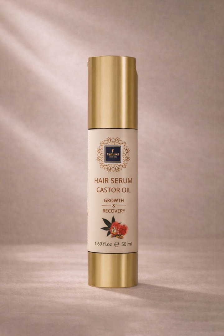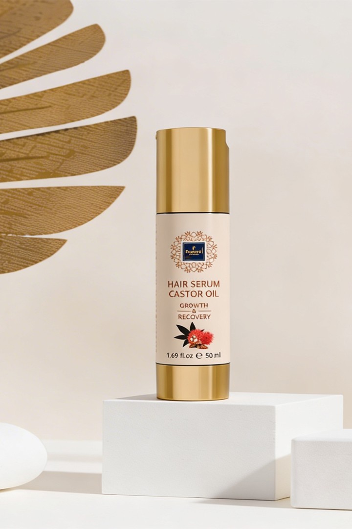 The Castor Oil Serum promotes active hair recovery. Its nourishing and moisturizing formula is suitable for different hair types such as dry, split ends, brittle and fluffy hair. Castor oil gives shine to dull and lifeless hair. Vitamin E nourishes the hair along its entire length, making it healthy and supple.