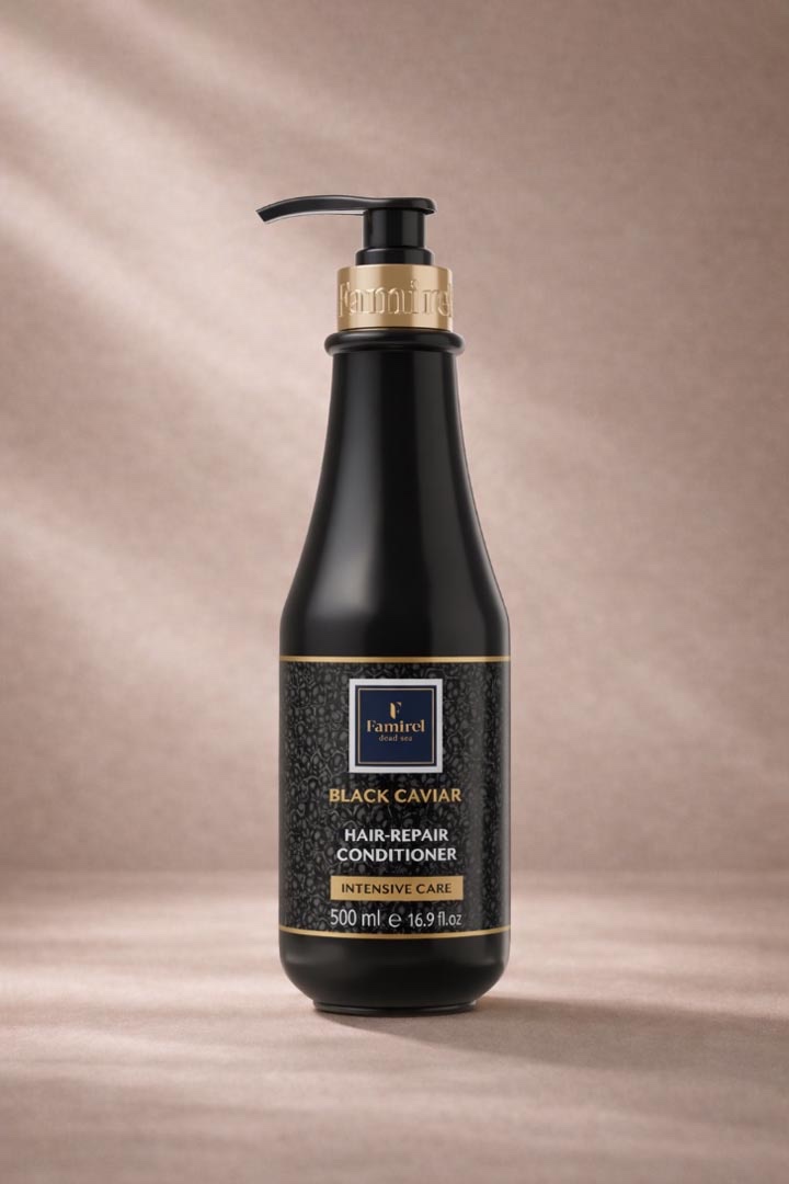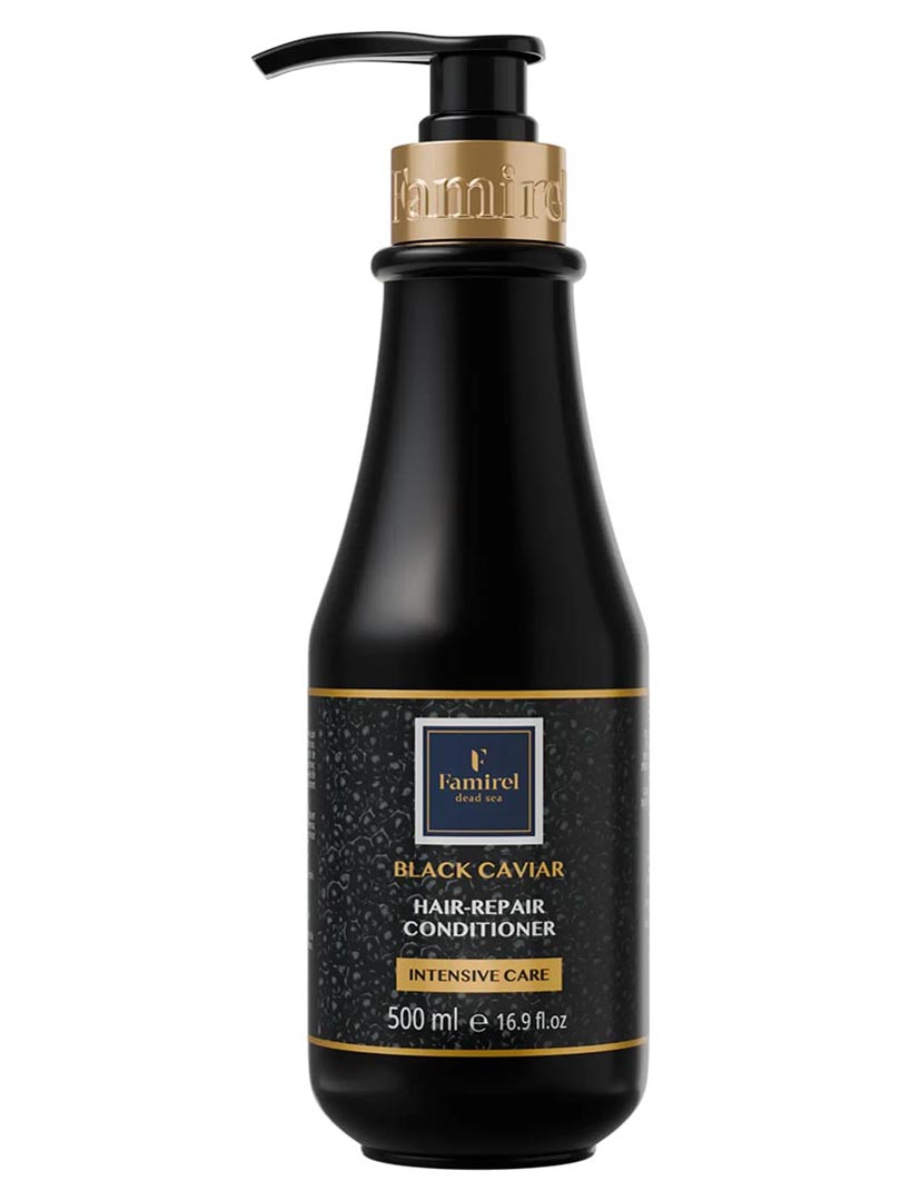 • Black caviar extract restores and strengthens hair structure, smooths it, enhances shine, and protects against UV radiation.