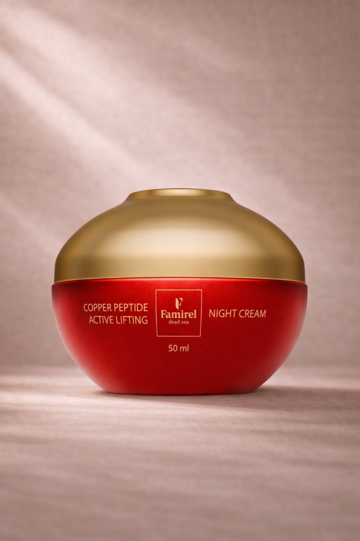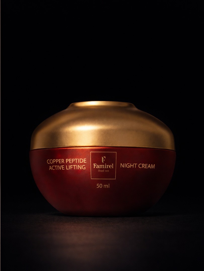 It restores and nourishes the skin during sleep. Active ingredients such as copper peptides and vitamin E promote cell regeneration and wrinkle smoothing.