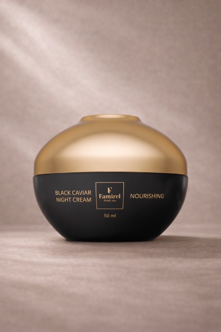 The night cream deeply nourishes the skin during sleep. The black caviar extract and vitamins promote cell regeneration, restore elasticity and