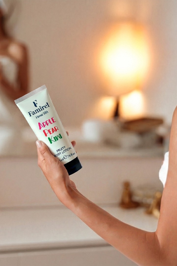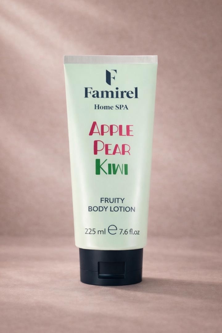 A body lotion where the essence of juicy pears and apples is harmoniously combined with kiwi extract. Carefully formulated with high-quality ingredients, the lotion makes skin care routine a pleasure. It intensely moisturizes the skin and gives an exquisite pleasure, leaving a feeling of lightness and freshness.