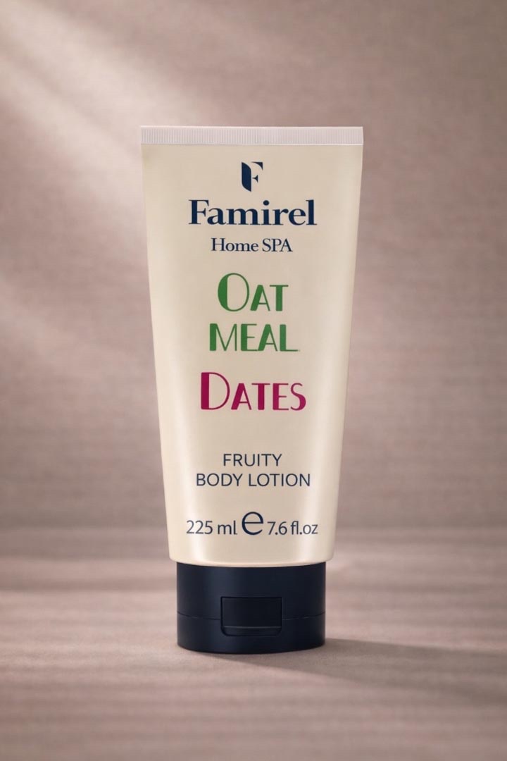 A body lotion where the essence of juicy dates is harmoniously combined with oatmeal extract. Carefully formulated with high-quality ingredients, the lotion makes skin care routine a pleasure. It intensely moisturizes the skin and gives an exquisite pleasure, leaving a feeling of lightness and freshness.