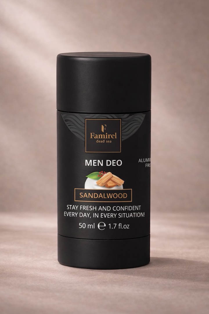 Аромат дезодоранта-стика Famirel «Сандал» — глубокий, мужественный и гармоничный, подчеркивающий природную силу и уверенность.
