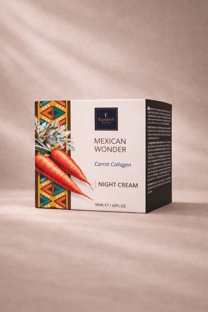 Пока вы спите, ваша кожа проходит естественный процесс обновления. Наш морковный коллагеновый ночной крем усиливает этот процесс, поставляя необходимые питательные вещества, гарантируя, что ваша кожа останется напитанной, увлажненной и сияющей. Просыпайтесь с посвежевшим и молодым лицом благодаря секретам красоты Мексики в каждой баночке!